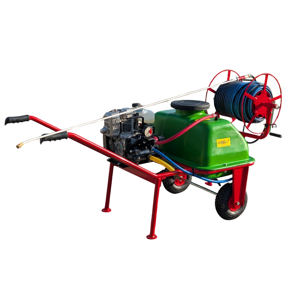Samokolnice-škropilnice so namenjene lastnikom manjših vrtov, sadovnjakov in nasadov, rastlinjakov, ki potrebujejo zanesljiv pripomoček za učinkovit nanos fitofarmacevtskih sredstev za zaščito rastlin ali gnojil. Opremljene so s črpalko MP25B ali MP25E lastne proizvodnje z elektro ali bencinskim pogonom, škropilno palico 80cm z enojno šobo, rezervoarjem kapacitete 90l in opcijsko s kolutom za do 100m tlačne cevi.